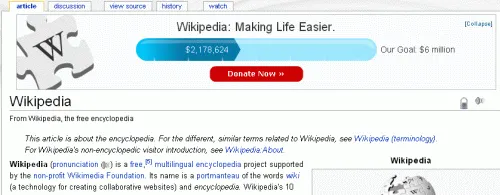 Wikipedia has added a very ugly donation banner to all its pages as part of a $6 million fund-raising campaign.